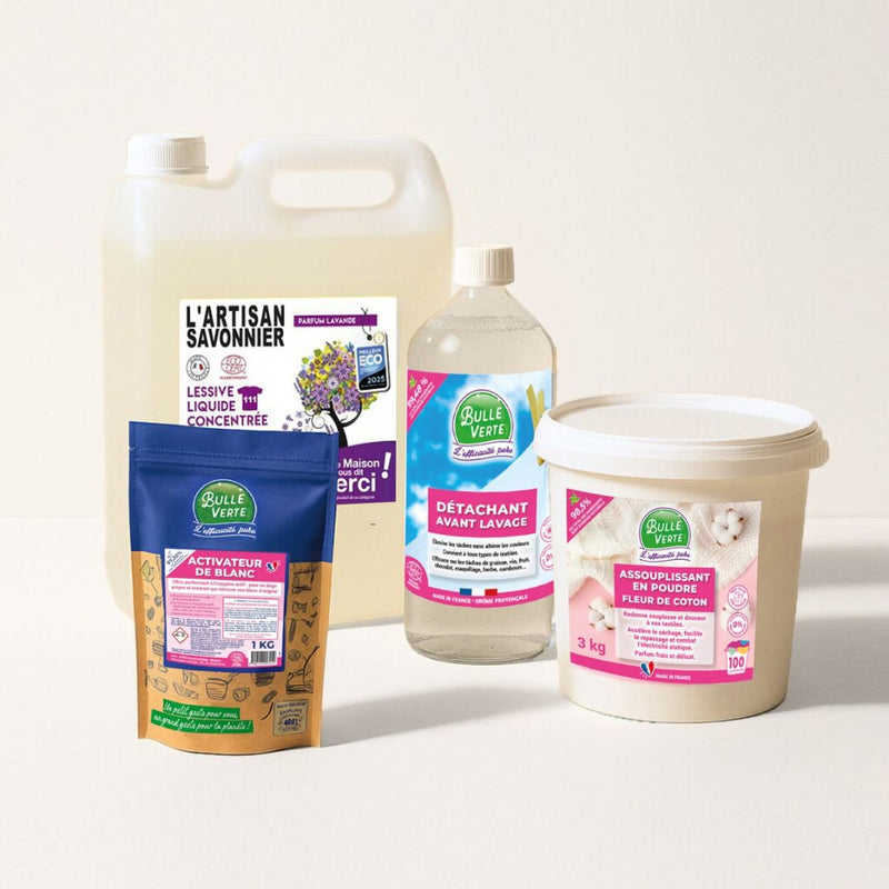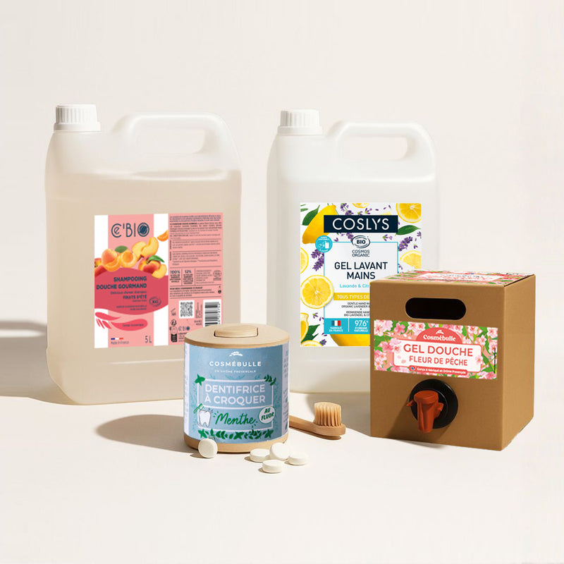 Notre magasin écologique en ligne mise sur les grands conditionnements pour simplifier votre quotidien et réduire la fréquence de vos achats.