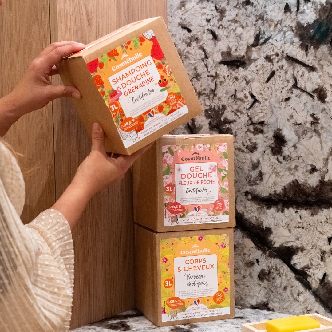 Appliquez une noisette sur cheveux ou corps mouillés. Faites mousser puis rincez abondamment. Avec un BiB 3L, réalisez jusqu’à 300 utilisations.